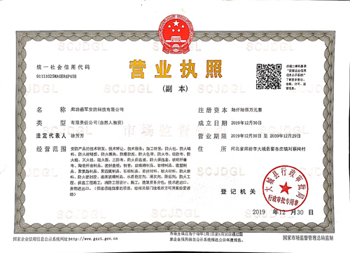 廊坊盛軍安防科技有限公司位于河北省廊坊市大城縣,京津石三角地帶。 公司經過多年的不斷的不斷發展壯大,現已成為集防火材料系列產品于一體的企業。 廊坊盛軍安防科技有限公司生產銷售:鋼結構防火涂料、防火包、防火堵料、防火封堵板、防火模塊、防爆膠泥、防火包帶、防火布、硅膠布、防火毯、滅火毯、阻火圈、防火保溫被等防火材料產品。 公司產品廣泛用于電力、化工、冶金航天、船舶、消防、建筑、機械等各個領域。多年來,我公司依靠先進的生產技術和優良的生產設備,以持續改進、不斷創 新為質量方針,以誠信為本、質量求生為經營理念,以經濟為心,以科技為先導,不斷發展壯大。 盛軍安防科技公司以高質量的產品澤惠百姓,用我們的智慧和熱情去描繪宏偉藍圖!驹敿毿畔ⅰ |